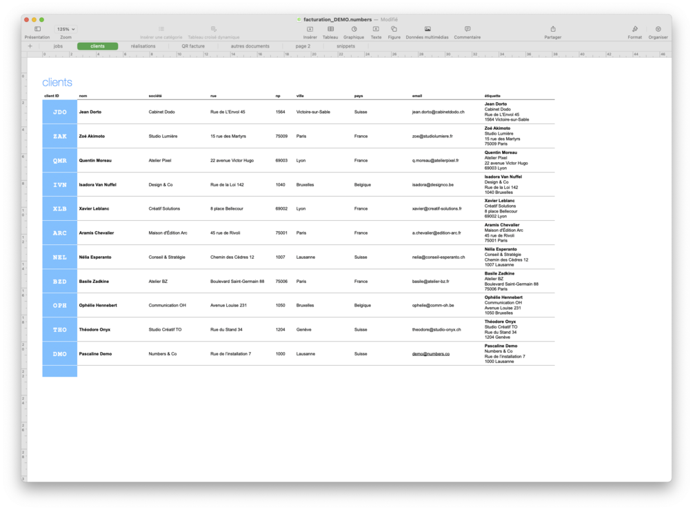 Tu recevras un fichier de démonstration avec des données fictives et un fichier vierge à personnaliser.